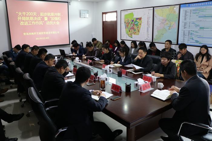 本報(bào)訊 3月18日,青島西海岸交通投資建設(shè)有限公司召開“大干200天,起步就是沖刺,開局就是決戰(zhàn)”暨“加強(qiáng)和改進(jìn)工作作風(fēng)”動員大會,深入學(xué)習(xí)貫徹全區(qū)“項(xiàng)目落實(shí)年”、“改革創(chuàng)新年”和“作風(fēng)建設(shè)年”活動精神,深化作風(fēng)建設(shè),推進(jìn)項(xiàng)目落實(shí),高標(biāo)準(zhǔn)、高效率、高水平推進(jìn)青島西客站規(guī)劃建設(shè)。